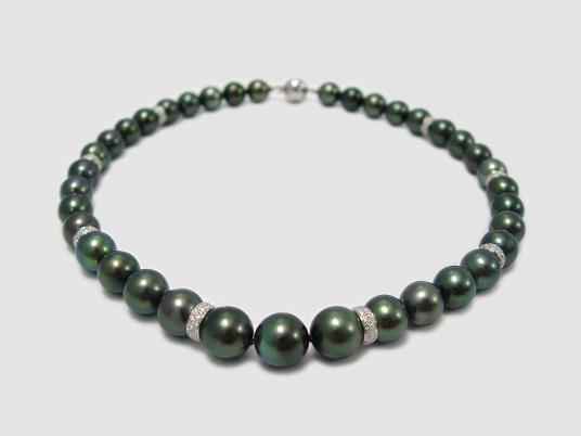 · Item Number: BM70213 · 11~13mm Tahitian Pearl Strand · 2.36tw Diamond Rondells · 37 Pearls · 18KWG |