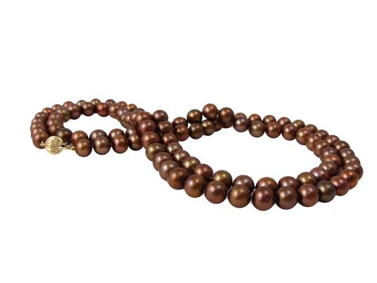 · Item Number: FW-8CH-33 · 8mm Enhanced Chocolate Color Freshwater Strand · 33” Strand · 14KYG |