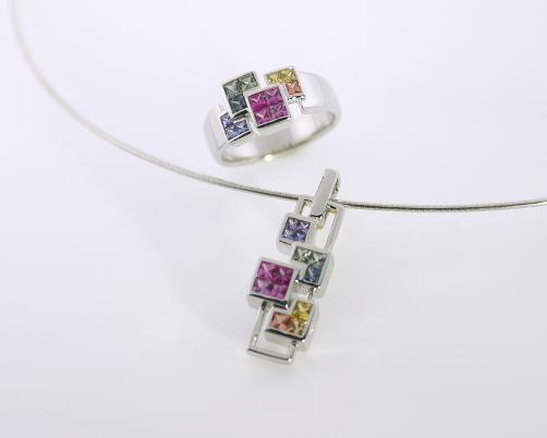 On special nights, Aurora Borealis casts its light shadow across the sky. Hikari captures the shimmer of Nature’s fireworks in our Northern Lights Collection. A delicate scattering of pink, purple, gold & green sapphires takes the spotlight against 18 Karat white gold. This singular collection of coordinating pendants, rings, & earrings makes a statement in the language of color & light. Northern Lights: Only from Hikari. |