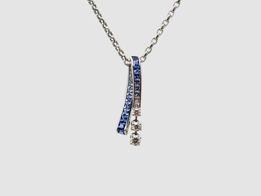 · Item Number: 006-2022 · Gradated Princess-Cut Sapphire Necklace · 1.85tw Sapphires · 0.45tw Diamonds · 18KWG · *Available in Pink, Blue, Violet, Yellow/Orange or Green Sapphires |