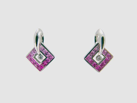 · Item Number: A191E · Gradated Princess-Cut Sapphire Earrings · 1.80tw Sapphires · 0.04tw Diamonds · 18KWG · *Available in Pink, Blue, Violet, Yellow/Orange or Green Sapphires |
