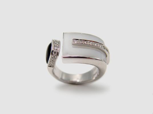 · Item Number: MWR-0004 · 0.37tw Diamonds · Onyx · Cubic Zirconium (White Milky Stone) · 18KWG |