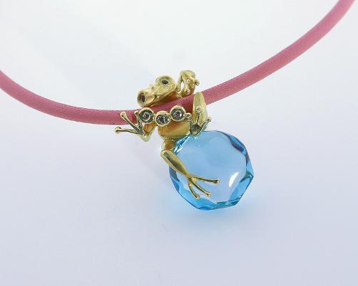· Item Number: 500-2079 · “Single Frog” · Blue Topaz · 0.07tw Diamonds · 18KYG |